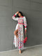 - Volanlı kol tasarımı ile modern ve şık bir görünüm sunar.; - Düz dokuma kumaş yapısı, dayanıklılığı ve konforu bir arada sağlar.; - Gömlek yaka detayı ile klasik ve zarif bir stil oluşturur.; - Çiçek desenli tasarımıyla baharın tazeliğini yansıtır ve canlı bir görünüm kazandırır.; - Kırmızı renk seçeneği ile dikkat çekici ve enerjik bir stil sunar.; - Uzun boy kesimi sayesinde feminen silueti ön plana çıkarır.; - Cepsiz tasarımı, minimalist ve temiz bir görünüm sağlar.; - İç göstermeyen kalın dokuma kumaş, rahatlıkla kombin yapma imkanı verir.; - Kapsız kaplama, elbisenin doğal formunu korur ve rahat hareket etme özgürlüğü tanır.; - Kemerli detay ile bel bölgesini vurgulayarak feminen hatları ön plana çıkartır.; - Dijital baskı tekniği ile canlı ve net desenler elde edilir.; - Sürdürülebilirlik detayına sahip malzemeler kullanılarak çevre dostu bir seçim yapılır.; - Tüm sezonlar için uygun olan tasarım, yılın her zamanında giyilebilirliği garanti eder.; -