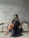 - Volanlı kolları ile şık ve modern bir görünüm sunar.; - Düz dokuma kumaşı sayesinde konforlu bir kullanım sağlar.; - Gömlek yaka detayı ile klasik ve zarif bir stil oluşturur.; - Çiçek desenli tasarımı, göz alıcı bir detay olarak dikkat çeker.; - Siyah rengiyle her ortama uyum sağlayacak zamansız bir seçimdir.; - Uzun boyu ve kloş kalıbı sayesinde feminen silueti ön plana çıkarır.; - Düğmeli kapama şekli pratik kullanım sunarken, kemer detayıyla belinizi zarifçe vurgular.; - Uzun kollu tasarımı mevsim geçişlerinde ideal konforu sağlar.; - İç göstermeyen yapısı ile rahatlıkla tercih edilebilir.; - Kalın dokusu soğuk havalarda ekstra koruma sunarken, astarsız olması hafiflik kazandırır.; - Kemer dahil paketiyle birlikte gelir; böylece ekstra aksesuar ihtiyacınız ortadan kalkar.; - Dijital baskı teknolojisiyle canlı ve net çiçek desenleri elde edilir.; - Sürdürülebilirlik detayı ile çevre dostu bir