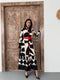 Atlas Kumaş Çiçek Desenli Gömlek Yaka Kırmızı Şerit Detaylı Elbise (KEMER DAHİLDİR)-42161