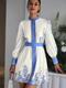 -Trend ortamlarda dikkat çekici bir görünüm elde etmek isteyenler için ideal olan bu elbise, balon kolları ve mini boyuyla modern bir stil vurgular.